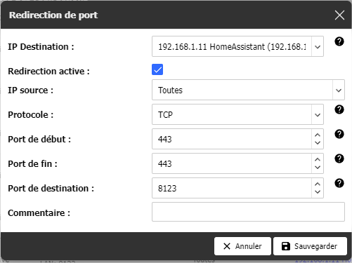 La page de redirection de port donne l’ip de la machine destination, donc ça a l’air bon ça aussi.