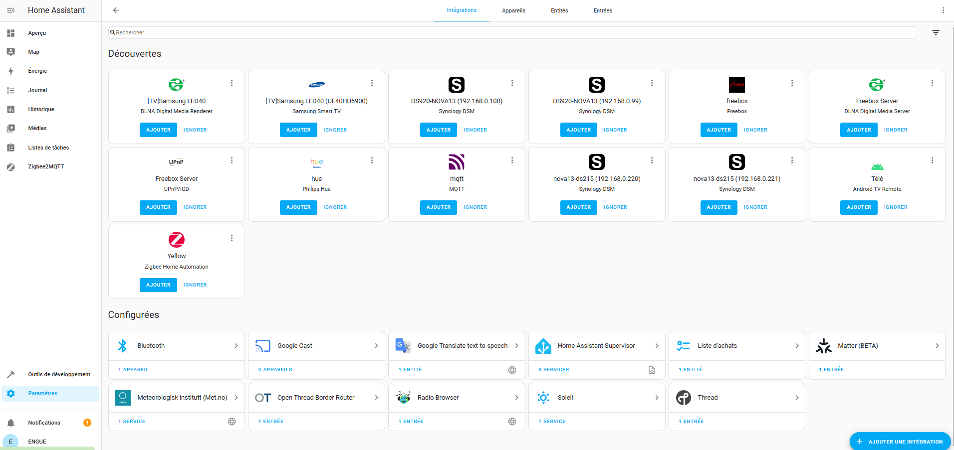 Il te faudra également ignorer l’intégration découverte Zigbee Home Automation (la dernière dans ta liste) car elle fera conflit avec ton installation de Z2M.