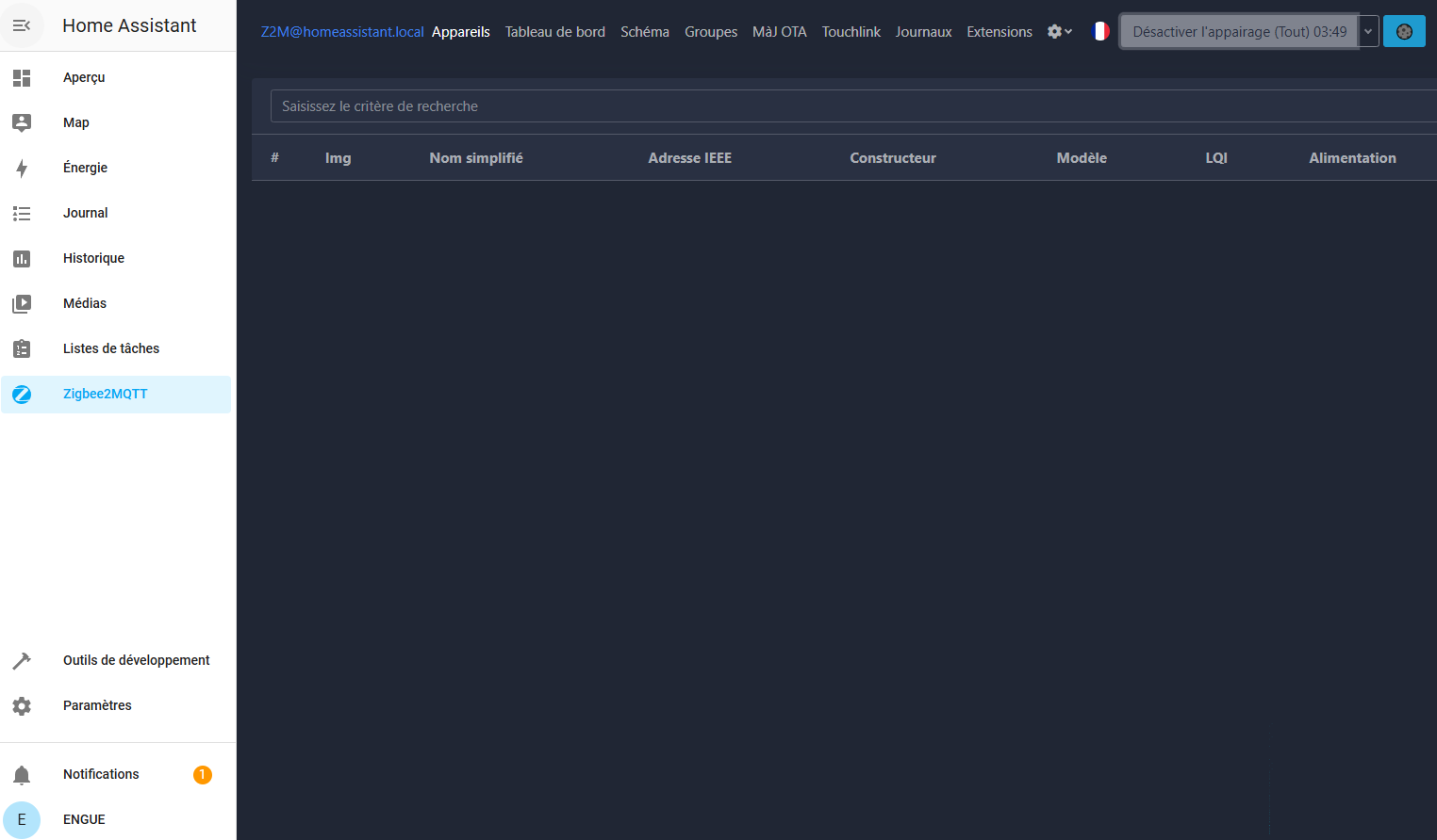 la suite c’est de refaire l’installation de Zigbee2MQTT