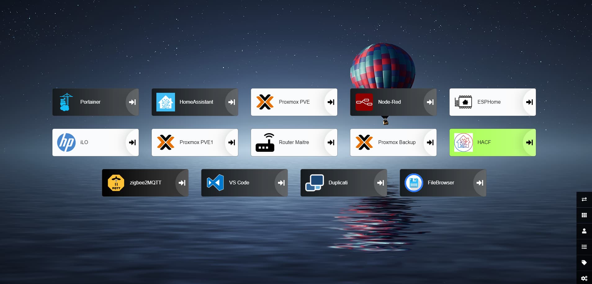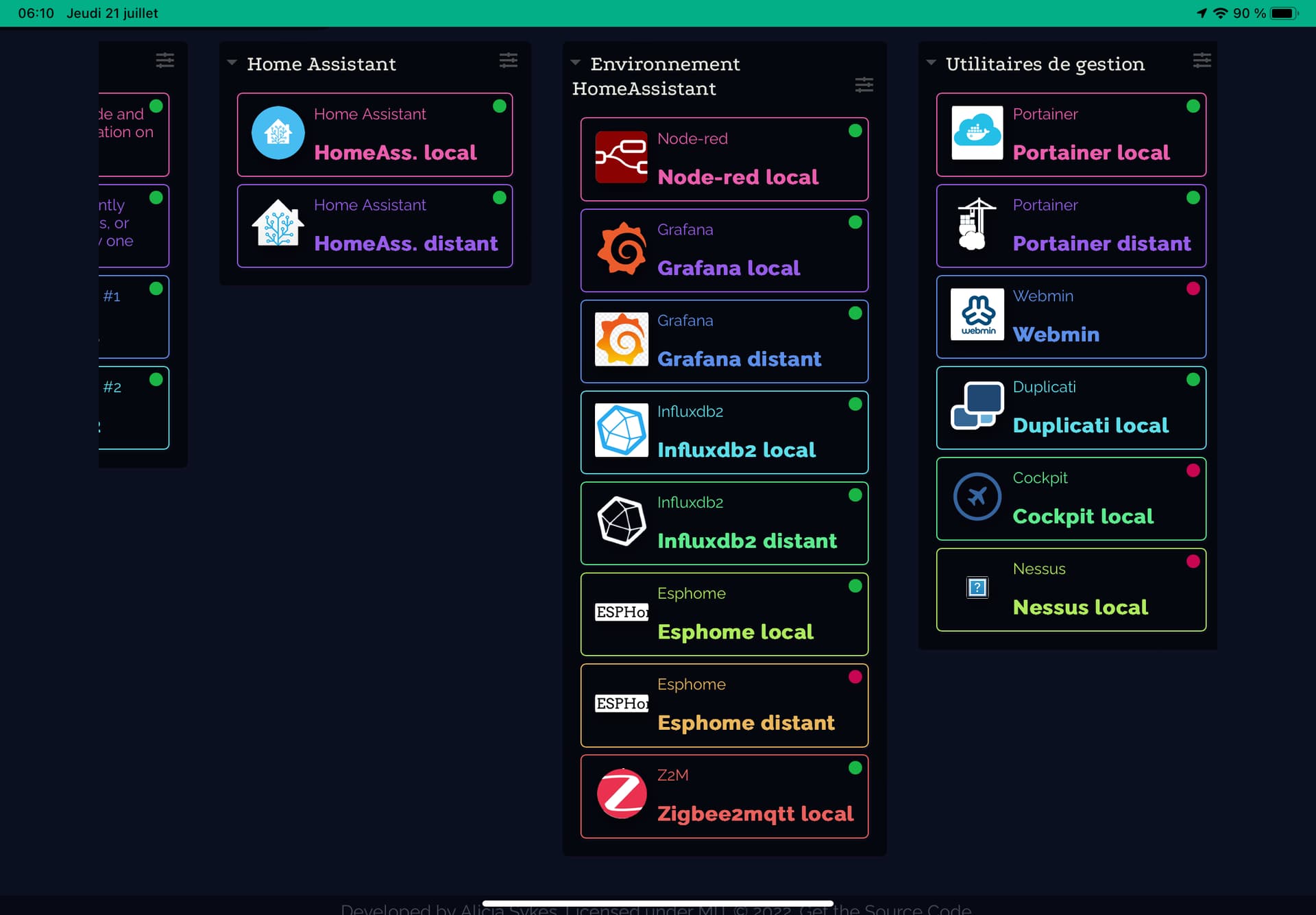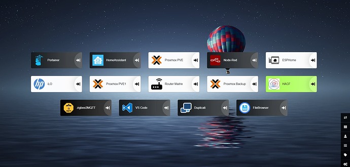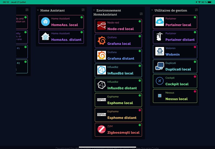 Et ça ne répond pas directement à votre question mais pourquoi ne pas utiliser Dashy ? Vous y mettrez tous les liens locaux ou distants