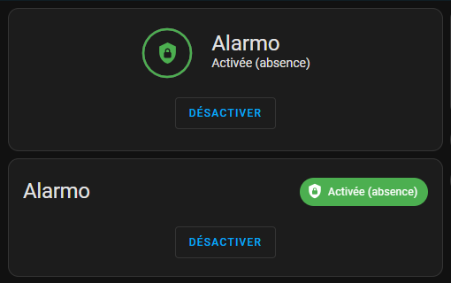 Exemple avec la carte Personalisée Alarmo et la carte Panneau d'Alarme