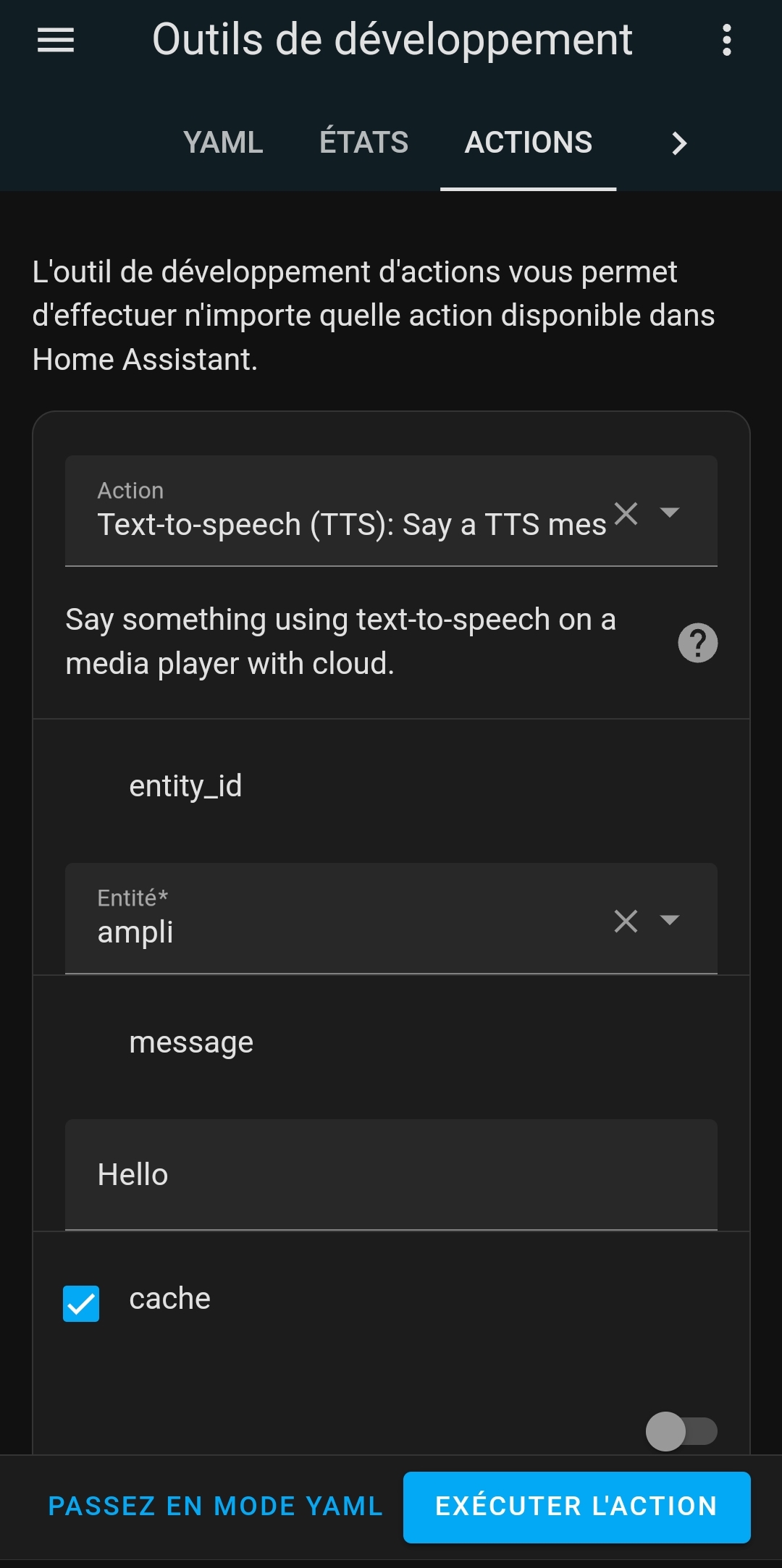 Là tu peux directement appeler un service ( tts par exemple) tu remplis les champs demandés et tu lance pour voir si ça fonctionne.