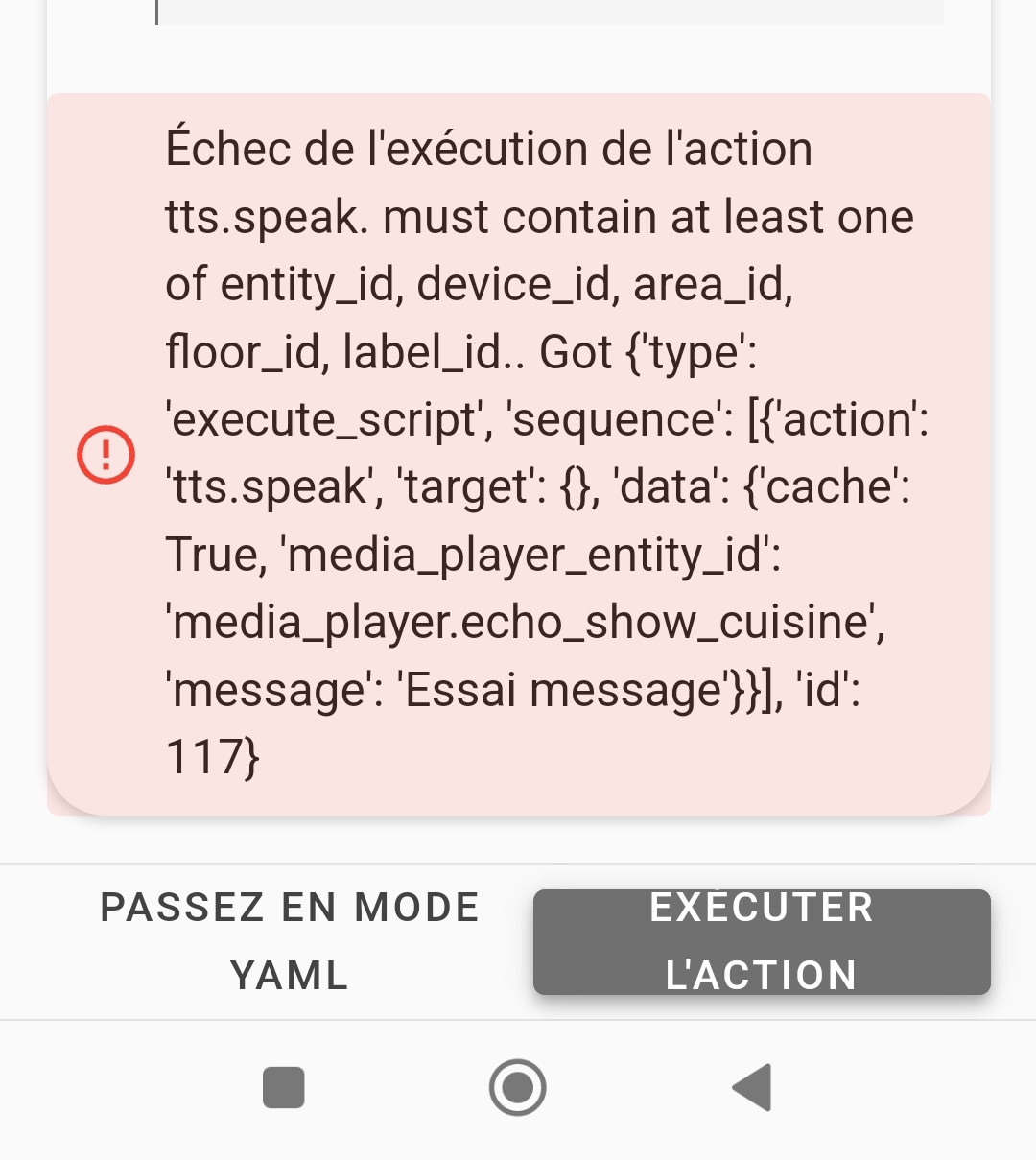 P.S : J’ai essayé ton code (TTS), ne fonctionne pas chez moi, malgré lui avoir indiqué un écho (target)