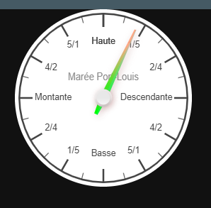 Voici une proposition de sensor en % permettant de localiser l’aiguille d’horloge de marée dans une card de type canvas-gauge-card. dont le Yaml sera le suivant :