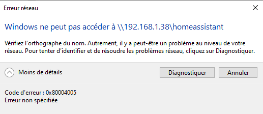 As-tu suivi le tutoriel d’installation de Samba Share ?