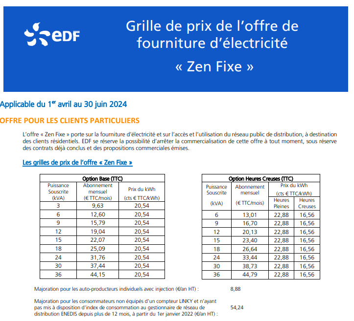 Je n’avais pas connaissance de cette offre je suis chez EDF en contrat tarif bleu, je me demande ce que ça change de passer en tarif zen fixe à part le tarif ?