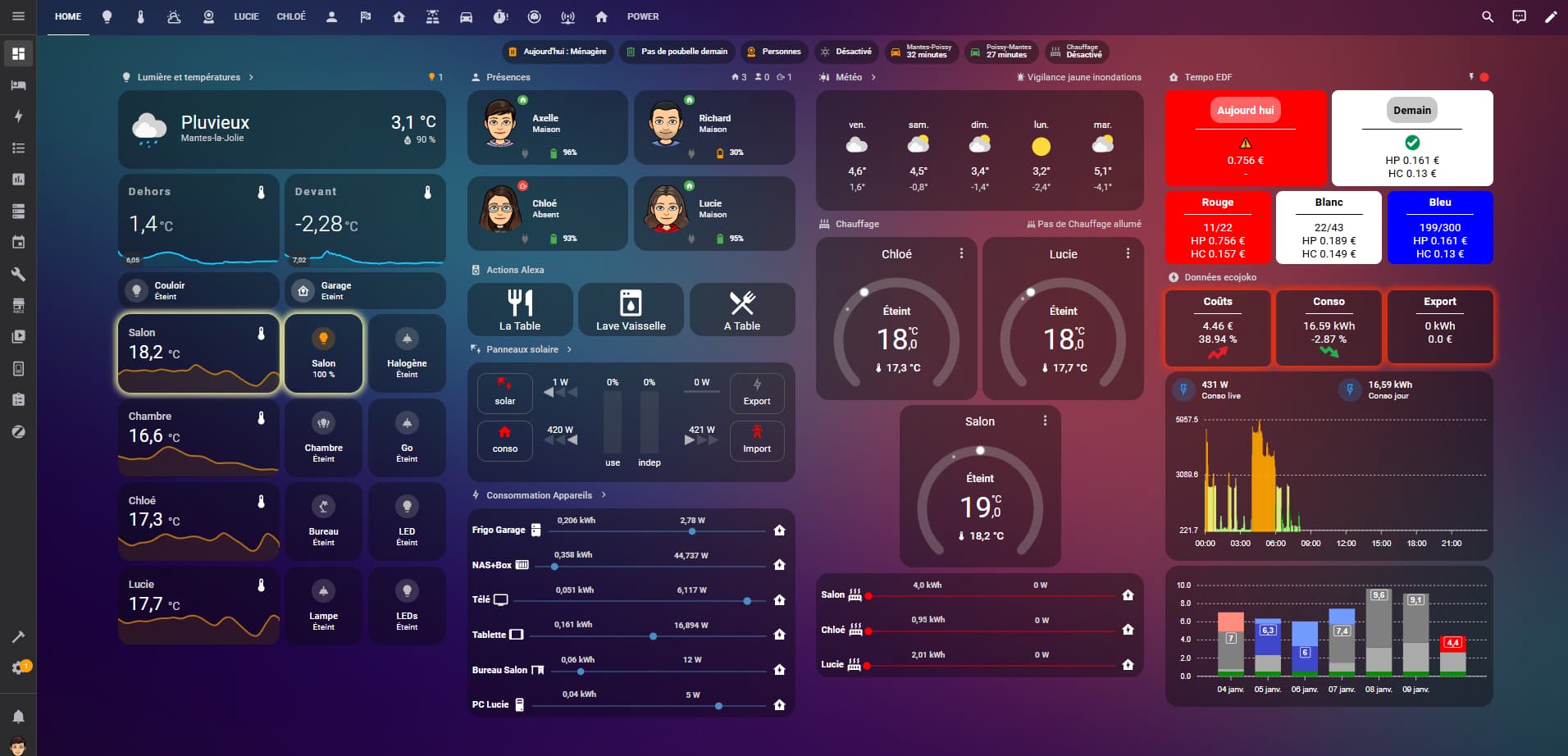 La nouveauté cette année c’est que j’ai converti mon père à Home Assistant. A 73 ans, il démarre tout juste mais il s’en sort quand même bien ! Faut bien que je tienne de quelqu’un cette envie de bidouiller