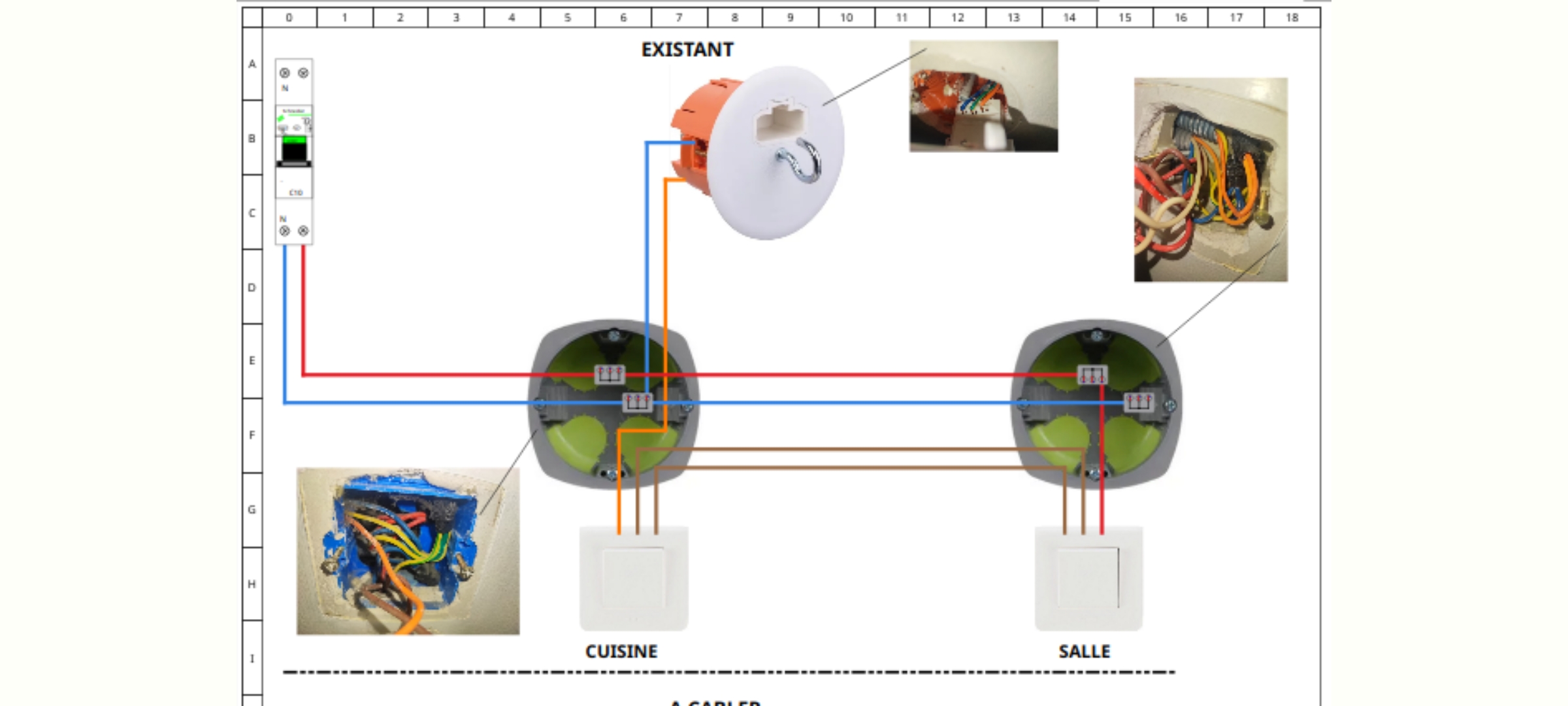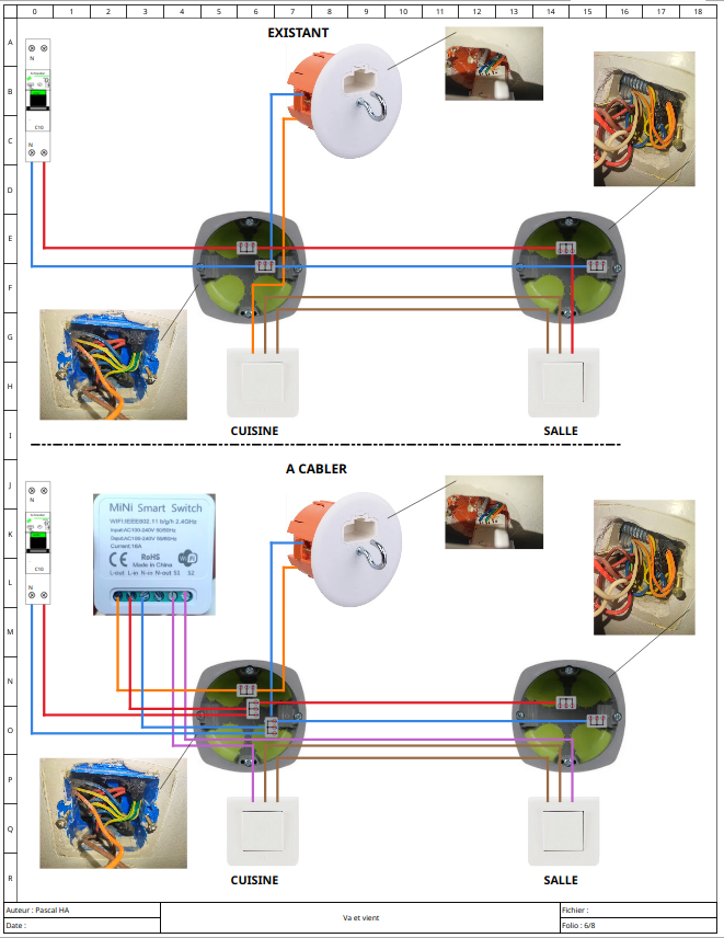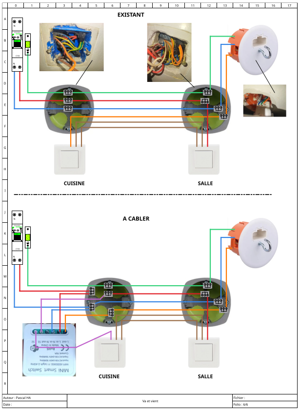 Verifie si le shema du haut « existant » correspond à ton cablage.