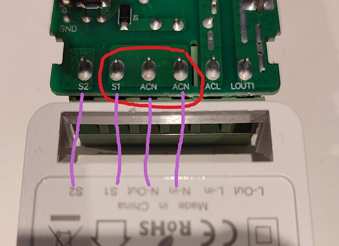 Je viens de verifier sur un ancien module que j’ai. La disposition etant la meme que le module que tu as mis en photo, le S1 est relié au Neutre (a confirmer), donc il y a de forte chance que tu vas devoir repasser un fil si tu veux mettre ton module dans la cuisine. Afin de correspondre a ton schema N°3 il faut repasser un fil. (il y a peut etre une solution sans repasser de fil, mais je ne peux la tester)