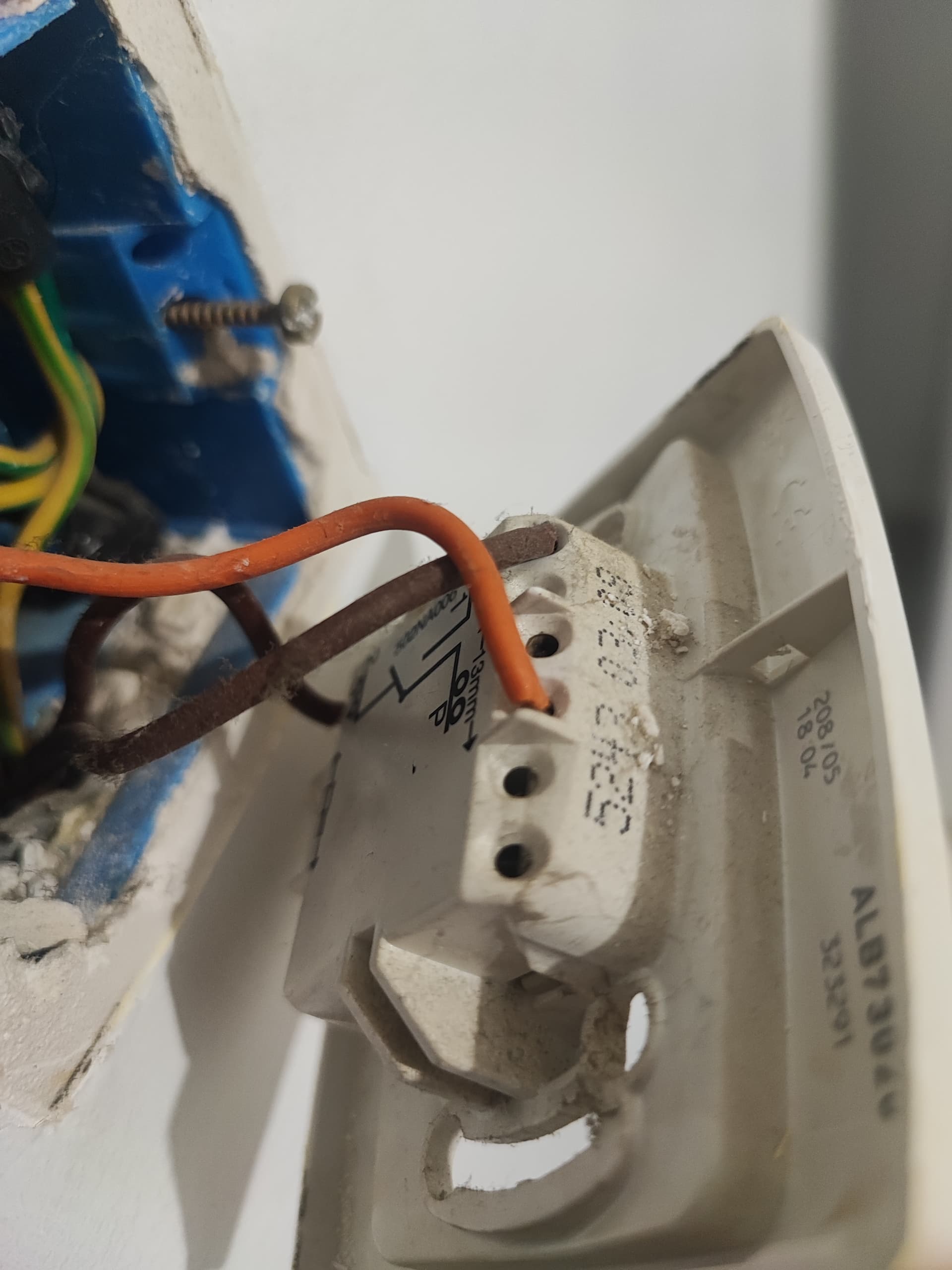 1- je déconnecte le fil orange de l’interrupteur cuisine et le connecte en L-out du module