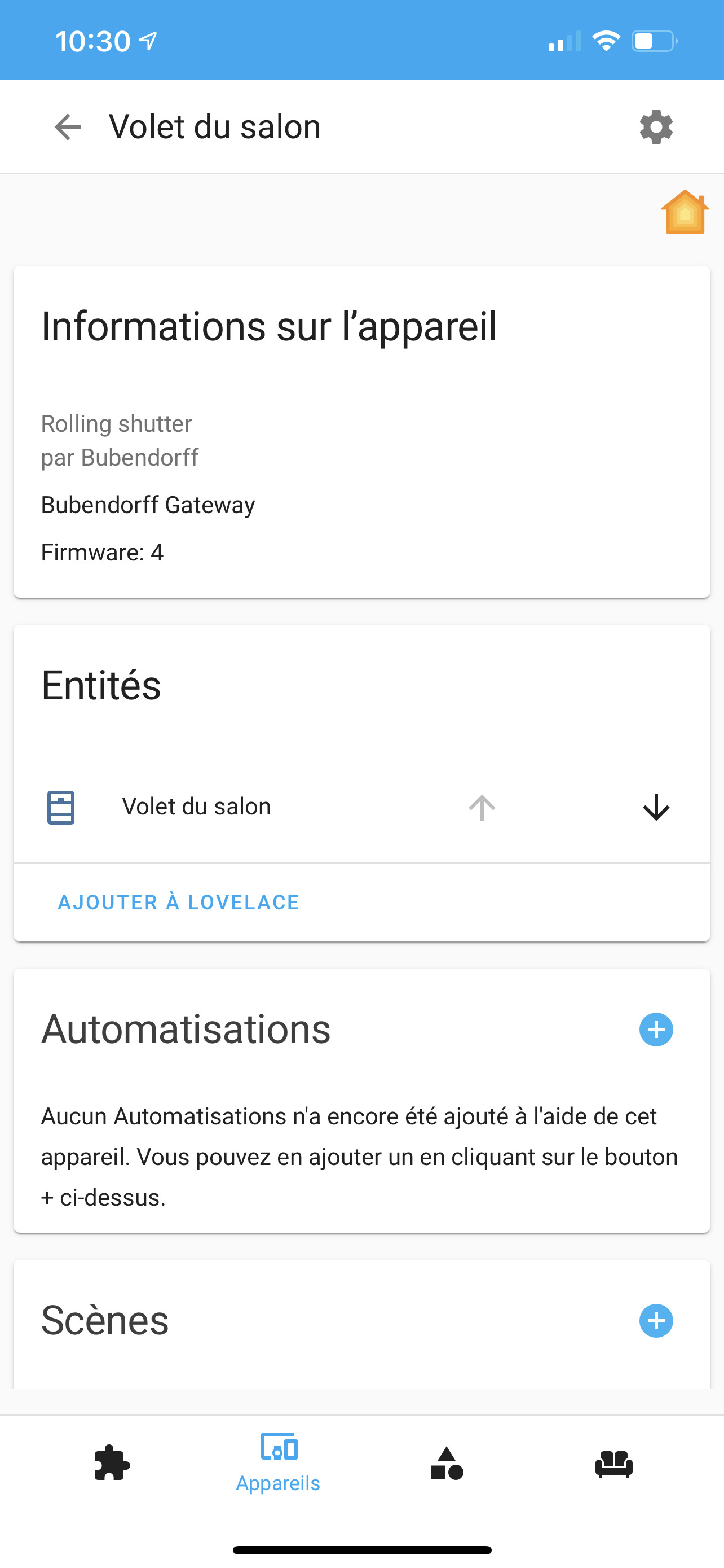 Les volets sont simplement intégrés à Home assistant à travers ce bridge.