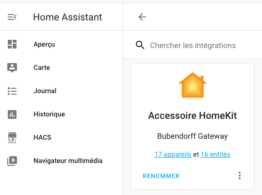Par contre, le iDiamant est compatible homekit, on peut simplement l’appairer au homekit controller de Home Assistant et avoir tous ses volets dans hass.
