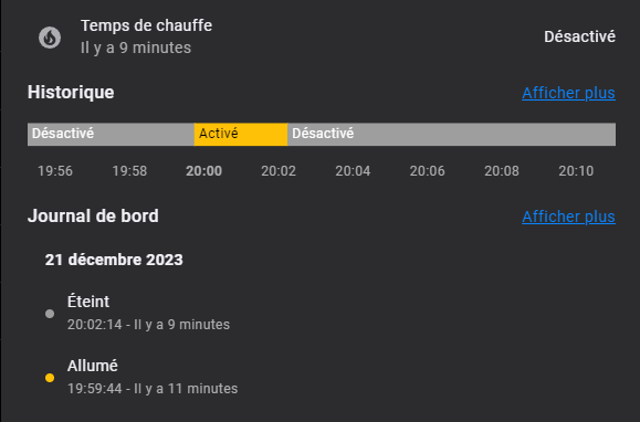 Comme Jym (merci à toi) je suis parti du suivi de consommation électrique de ma chaudiere. Le fonctionnement du brûleur est reconnaissable à partir d’une consommation de plus 100w. (j’ai max 2 pompes de circulation qui tournent, une pour le circuit de chauffage et l’autre pour l’eau chaude sanitaire)