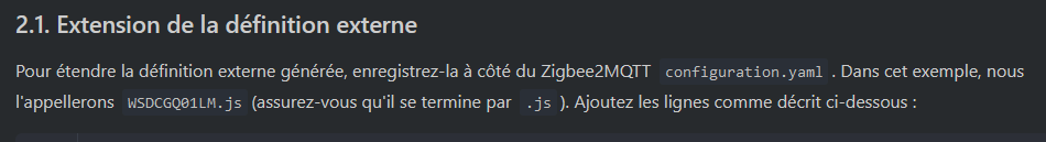 Hello, oui j’ai bien essayé, mais je n’ai pas trop compris la manip. Je dois cliquer sur generate-external-definition … mais que fais-je du texte en dessous? Je dois le coller quelque part? Genre configuration.yaml?
