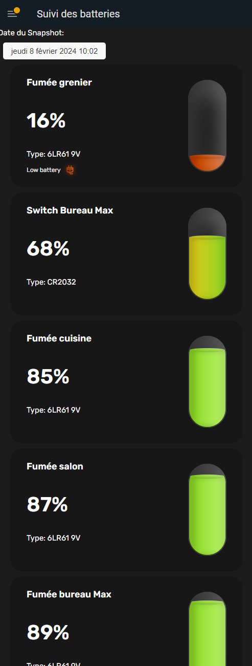 Permet d’avoir des infos supplémentaires sur les batteries de vos capteurs (type de battery, nombre, date de remplacement etc…)