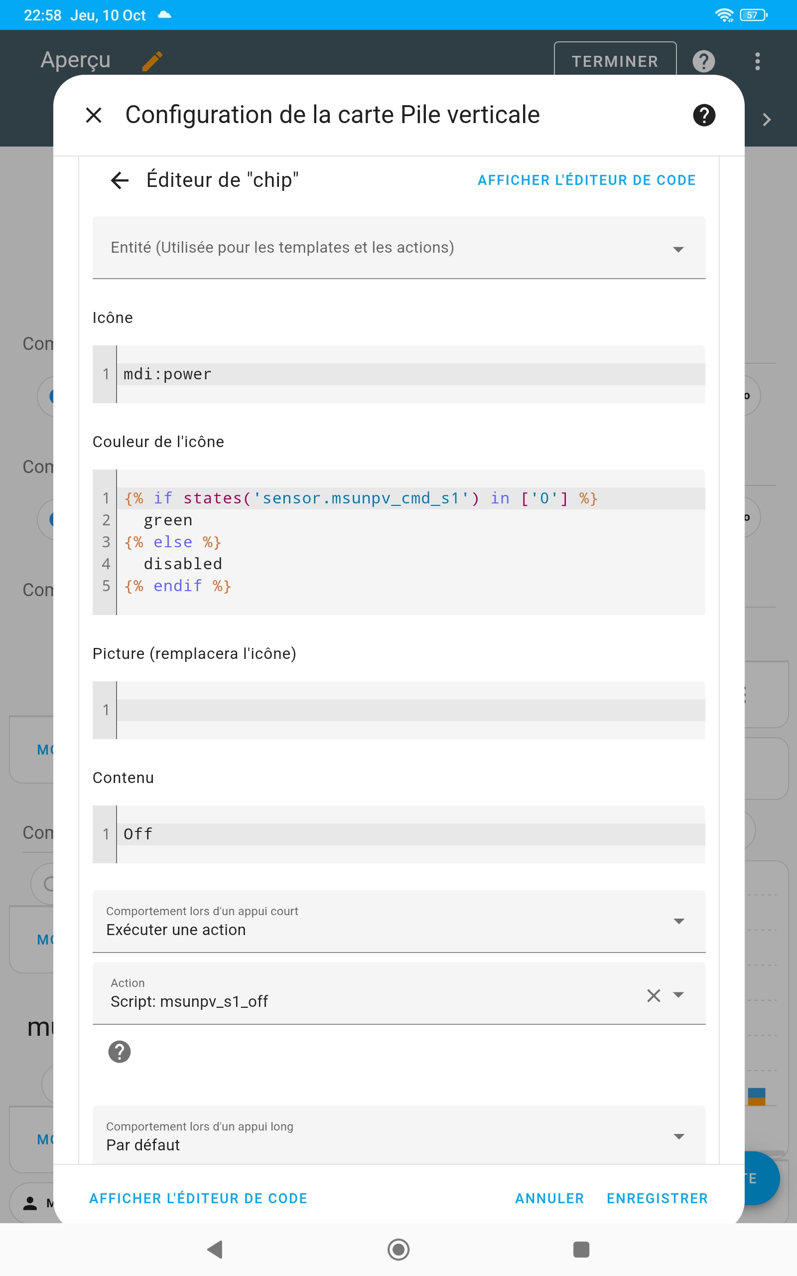 Bonjour, je débute avec Mushroom. Je voudrais que mes icônes changent de couleur si la température dépasse un certain chiffre. J’ai fait ce code, mais il n’y a pas de couleur.