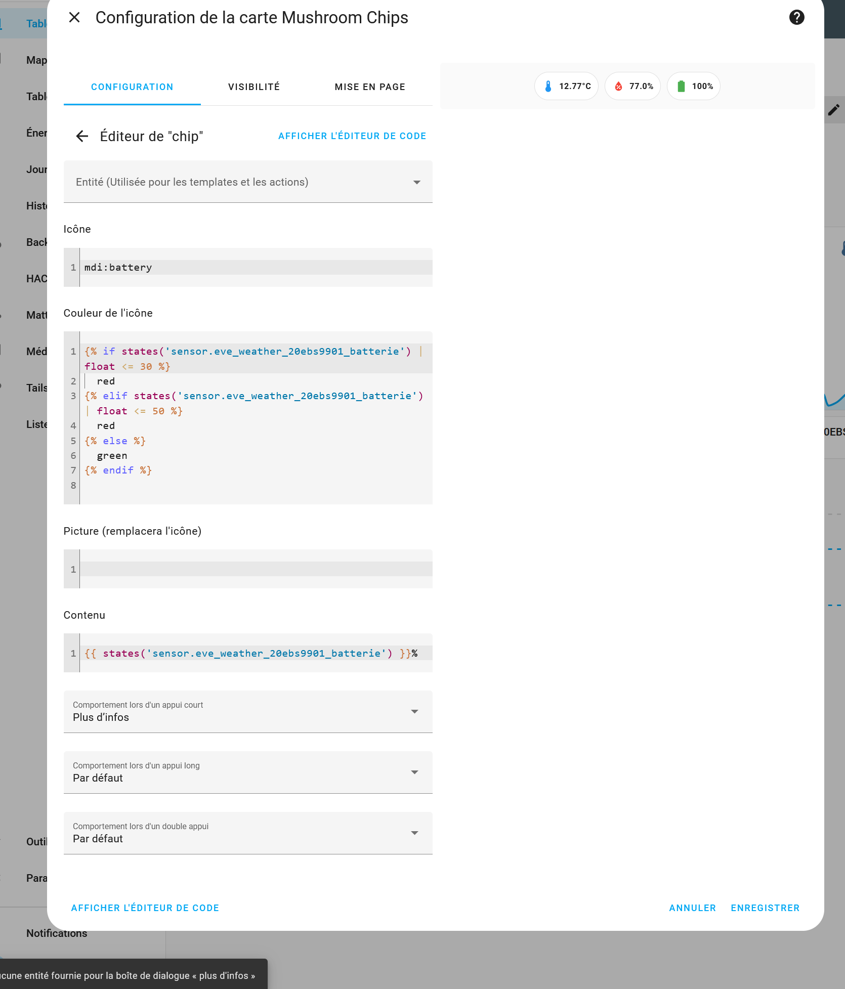 j’ai une question es que on peu rajouter le fonction que lorsqu’on appui dessus les icônes on voit apparaitre le graph du sensor ? comme la fonction entity ? et pourquoi il y a cette ligne dans le sensor temperature :
