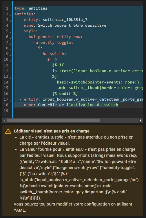 Suite à une demande Discord, voici comment faire pour activer/désactiver un switch sur une carte Entités en fonction de l’état d’une autre entité à l’aide de card-mod :