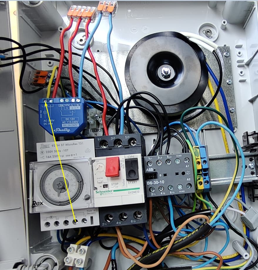 ce que tu appelles le commutateur , c’est bien le shelly ? et le contacteur le module ABB B6-30-10 ??