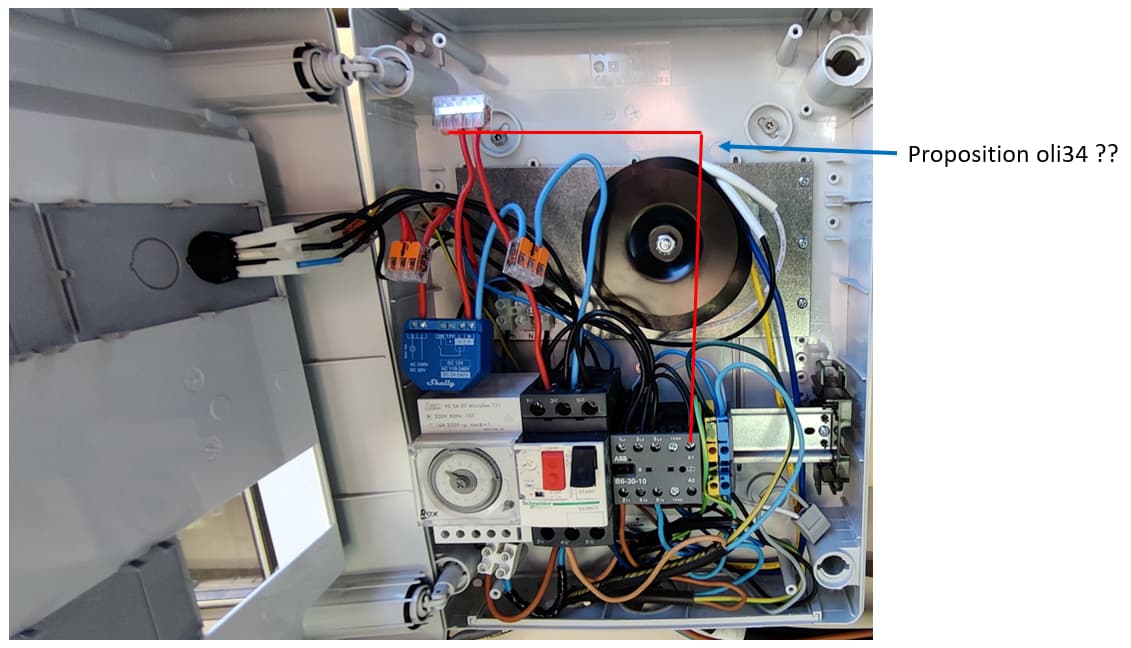 attention, l’angle de la photo laisse penser que la le mode auto est relié sur le input du shelly, je précise qu’il est bien sur le output.