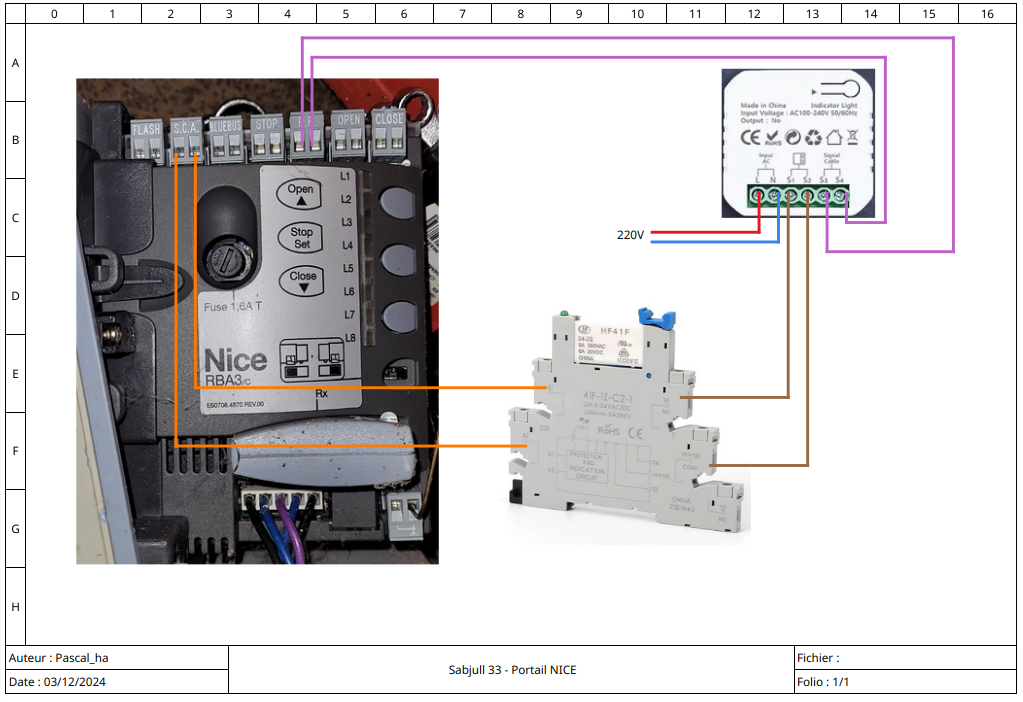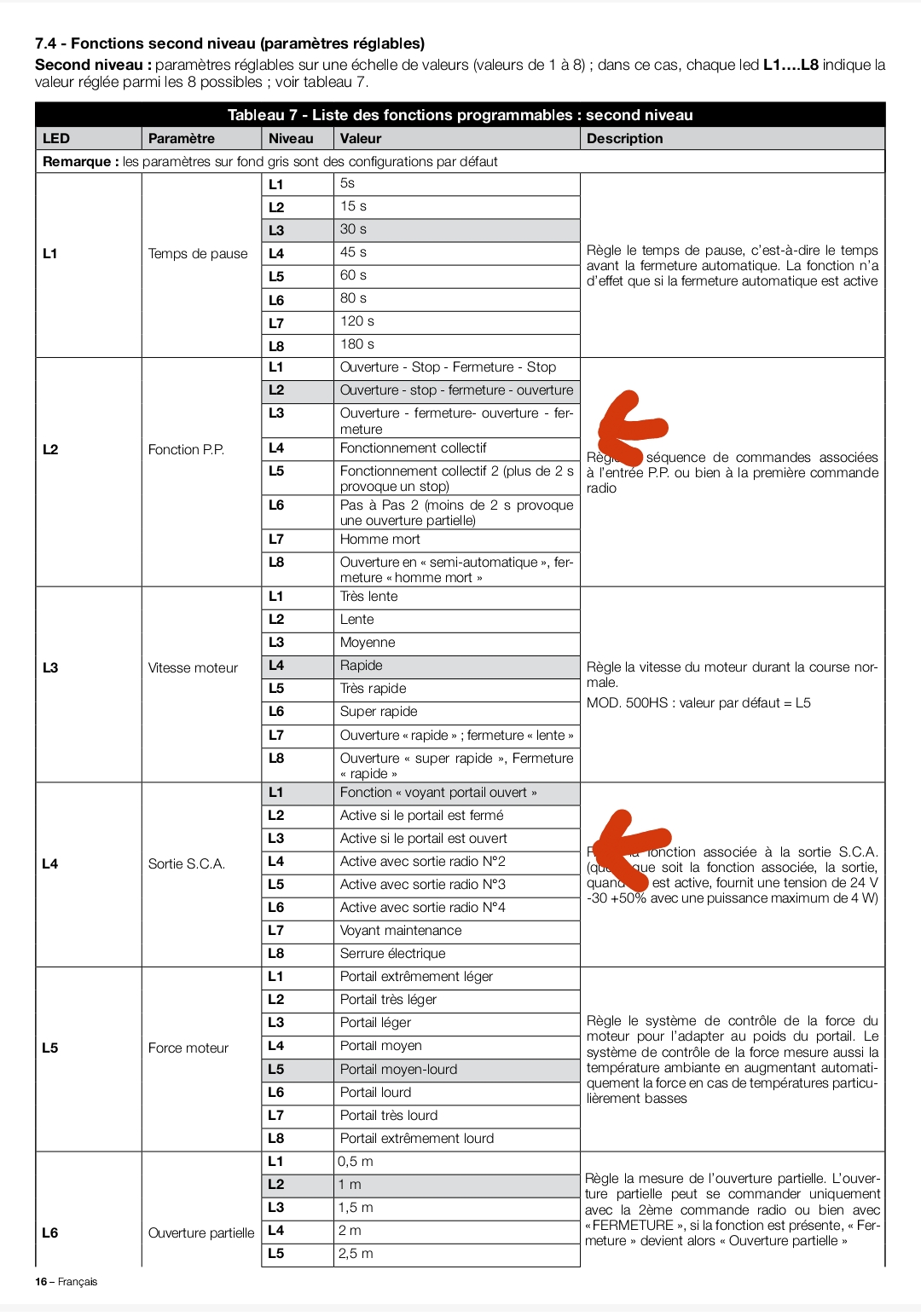Marche aussi avec un relai simple branché sur la P.P qui est le pas à pas et qui fait alternativement l’ouverture et la fermeture.