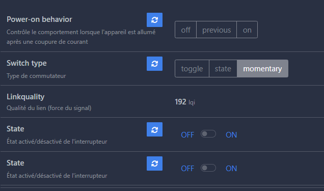 power on behavior ==> ça je sais, ce que je voulais dire c’est qu’en passant en momentary je n’ai pas vu d’autres paramètres avec la notion de durée.
