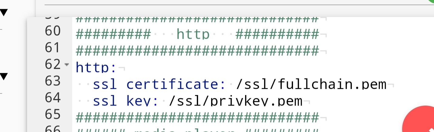 The system cannot restart because the configuration is not valid: Invalid config for 'http' at configuration.yaml, line 9: expected dictionary for dictionary value 'http', got 'ssl_certificate:/ssl/fullchain.pem ssl_key:/ssl/privkey.pem'