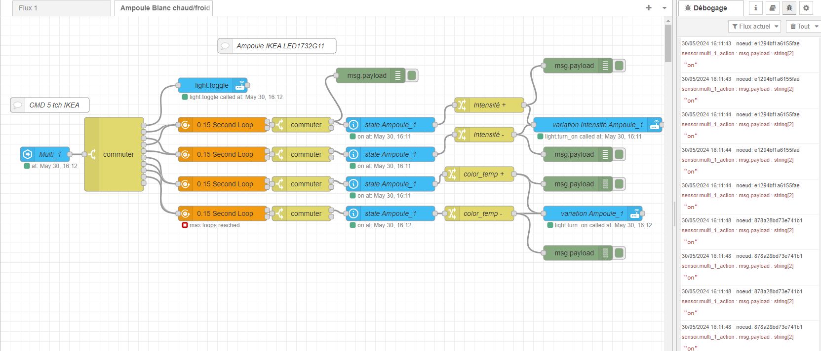 mais j’ai tout recommencé avec la version 2024.5.5 pour Home Assistant OS et pour Node red 3.1.9
