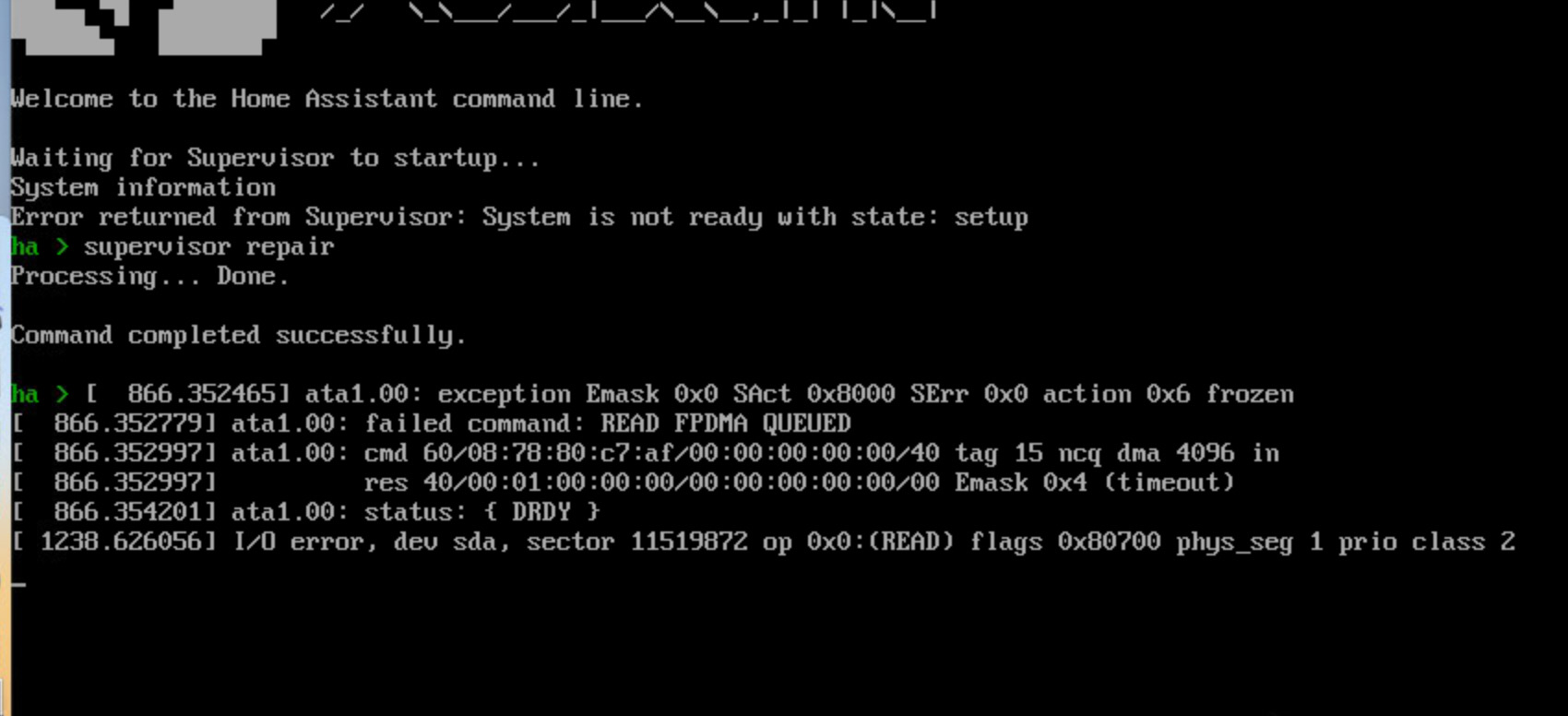 Non, désolé, j’ai tapé supervisor repair car j’avais fait des recherches et trouvé cette réponse. J’ai donc redémarré proprement mon ordinateur, puis ma machine virtuelle après quelques minutes d’utilisation voilà ce que j’ai sur l’écran.
