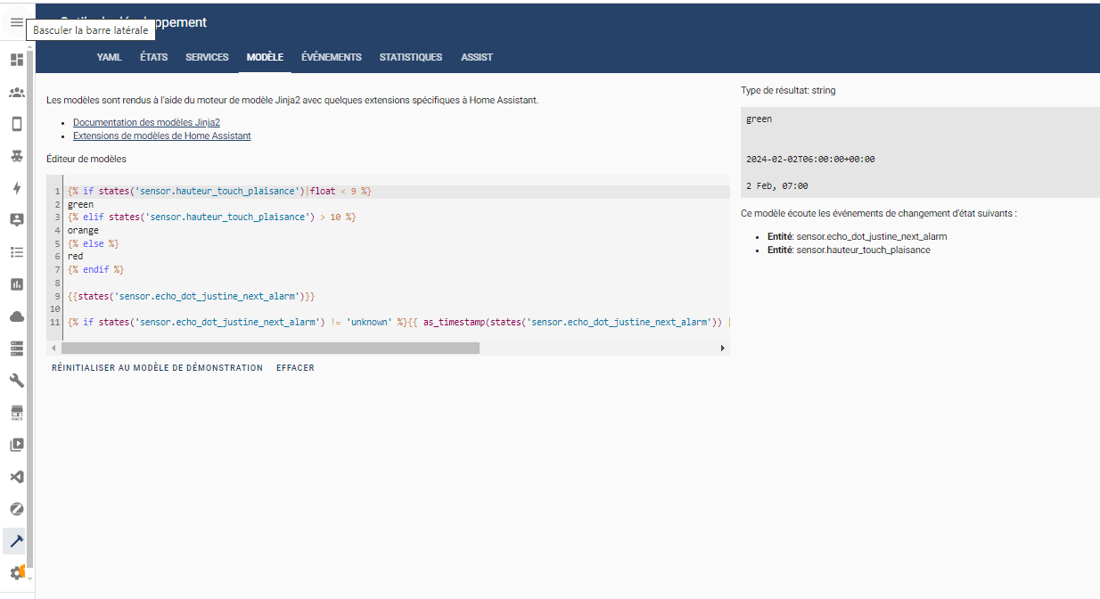 Sinon pour quelque chose de simple comme ça on peut aussi utiliser uniquement une carte mushroom template avec l’info secondaire sur une ou deux lignes… Ca permet de commencer doucement à se familiariser avec le code des templates en Jinja…