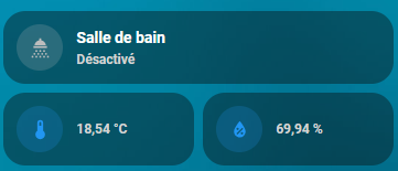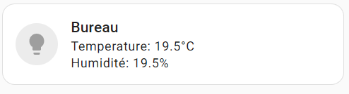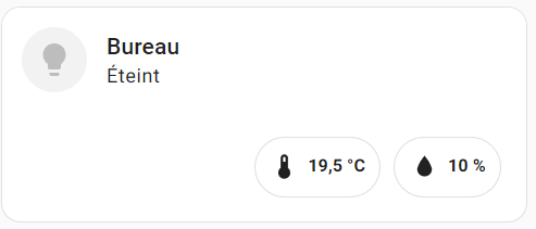 J’utilise Mushroom et en particulier l’entity card. Je souhaiterai mettre sur une entity card type « light » les infos de la température de pièce et de l’hygrométrie pour éviter de prendre top de place sur le tableau de bord.