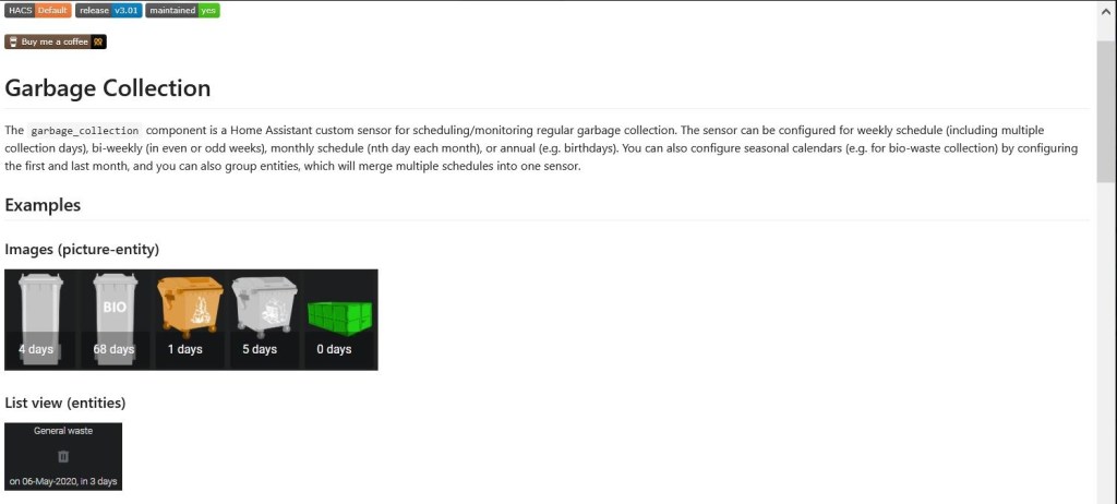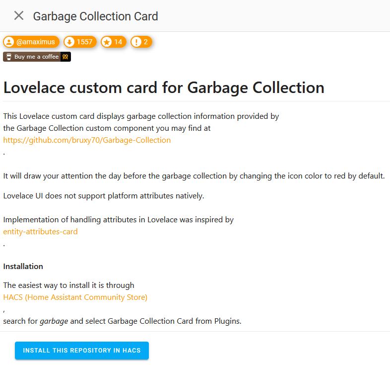 Suivre la procédure d’installation d’une intégration via HACS, Rechercher Garbage Collection.