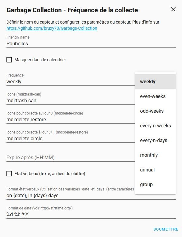 Refaite de même avec vos autres types de poubelles. Vous pouvez retrouver tous vos calendrier dans Configuration, Intégrations.
