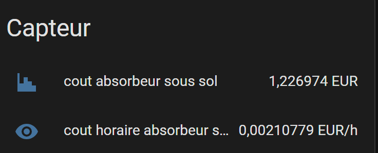 Voilà il ne reste plus qu’à ajouter l’index « énergie soutirée » et choisir « tarif actuel » dans le module énergie pour avoir un suivi de conso et du prix (vérifié avec hellowatt ça correspond à l’abonnement prêt)