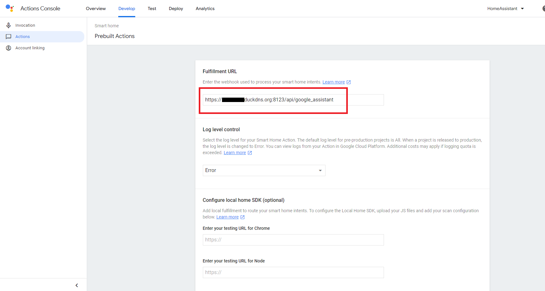 J’ai suivi la procédure de conf pour l’intégration manuelle de Google Home. Coté Google tout semble OK, par contre lorsque Google Home tente de se connecter j’ai l’erreur suivante dans le fichier de log: