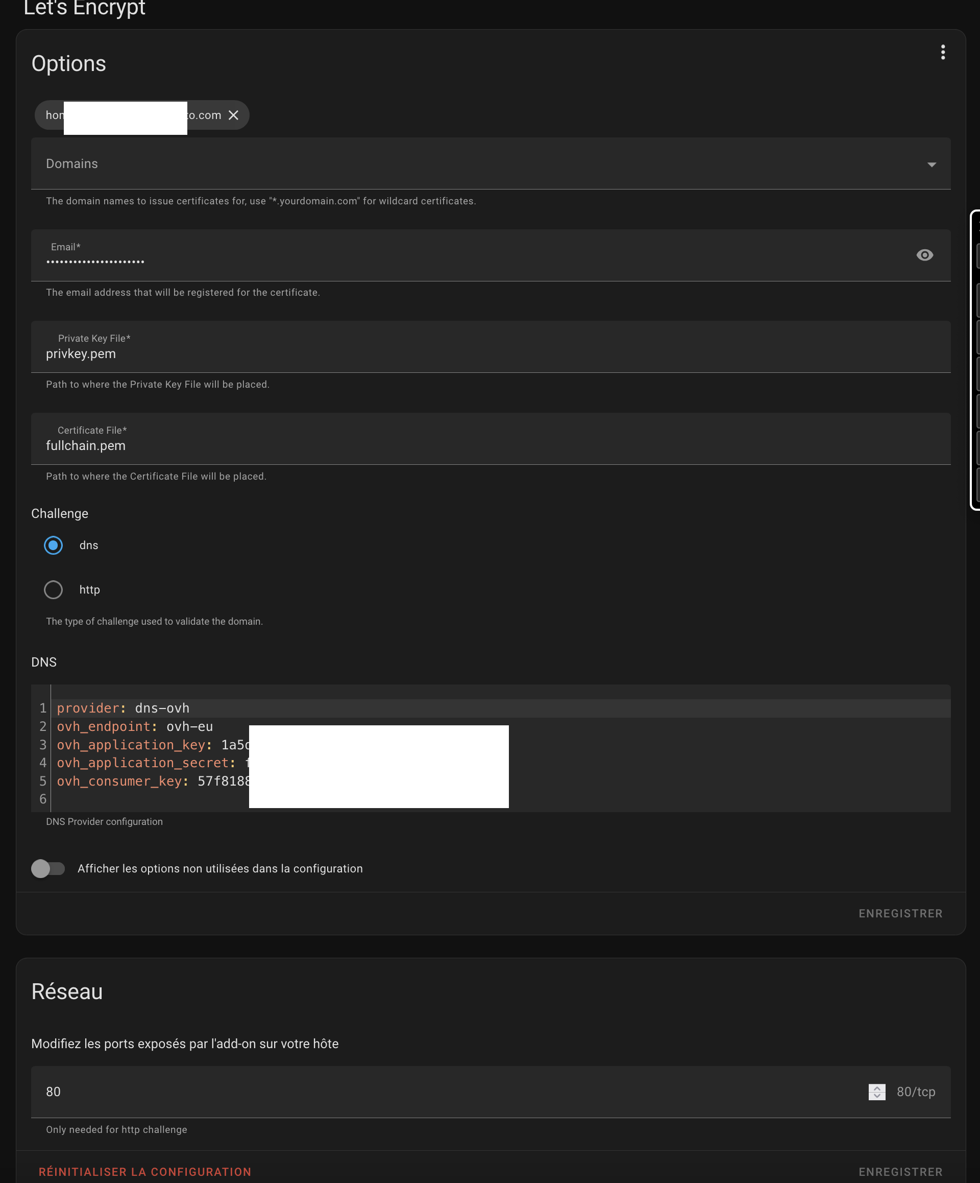 je reste bloqué a cette endroit , je continu mes investigations , " Missing required option ‹ domains › in Let’s Encrypt (core_letsencrypt)"