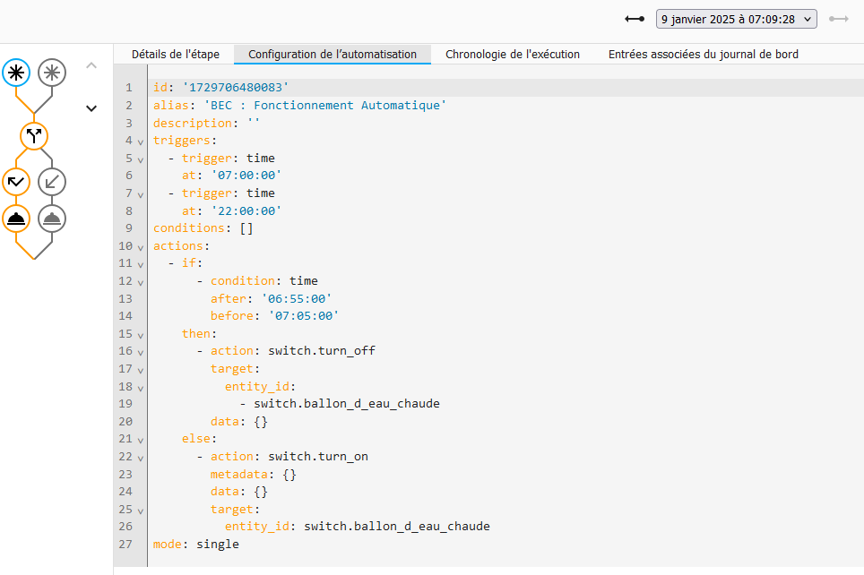 Je poste tout de même une capture d’écran de mon automatisation si ça peut permettre de comprendre pourquoi j’ai mis une condition de l’heure.