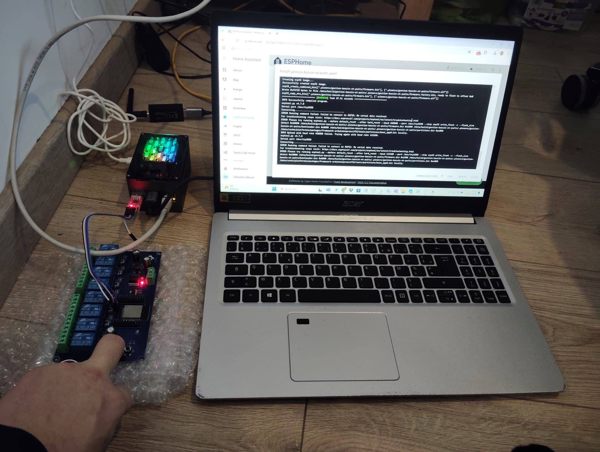 au niveau de ESPHOME quand je veux flasher (adaptateur connecté au raspbery qui héberge HAOS , je vois bien mon aaptateur (je suppose que c’est ça)
