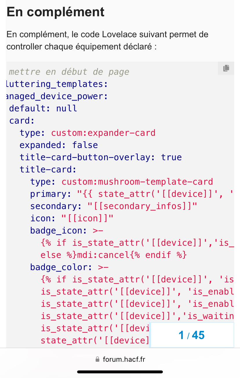 Par contre pour l’histoire de la page lovelace, j’ai pas tout saisi. J’ai créé une nouvelle page, ou j’ai collé ton template. J’ai ensuite ajouté une custom card avec le code fourni, et j’obtiens un truc qui me laisse penser que je fais n’importe quoi :