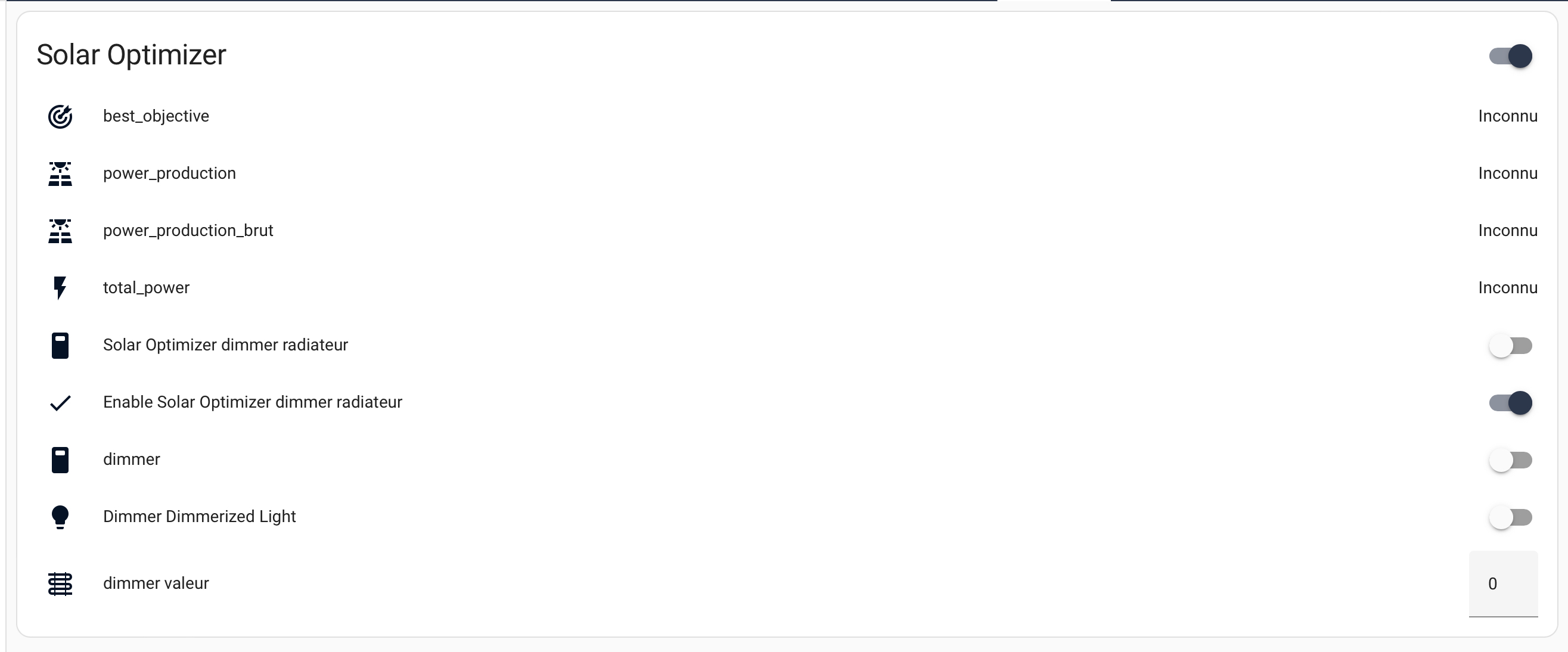 J’ai bien des valeurs dans les entités Solar Optimizer mais seulement la journée, et avec tout ces switch je ne sais pas lesquelles activer?