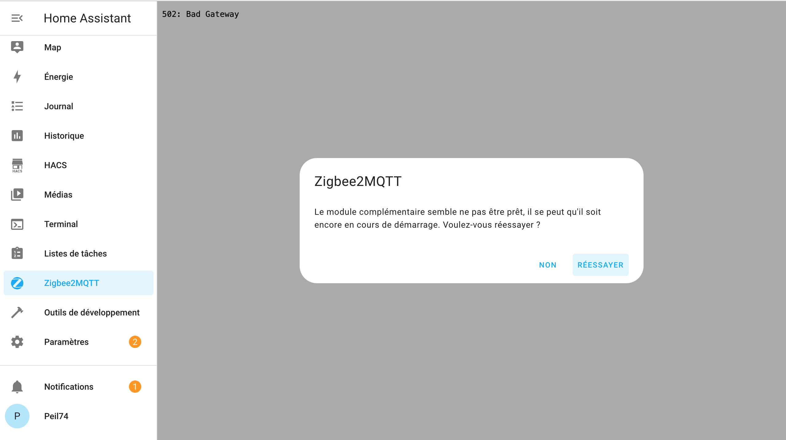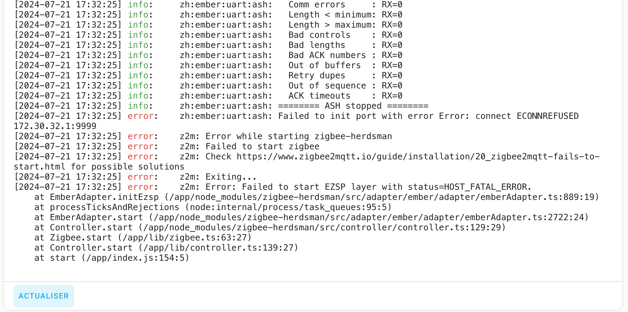 EDIT : je viens de voir le message. Pour avoir accès à l’interface de z2m, il faut attendre un peu après le démarrage de Z2M. Il faudrait aussi une copie des journaux de Z2M.