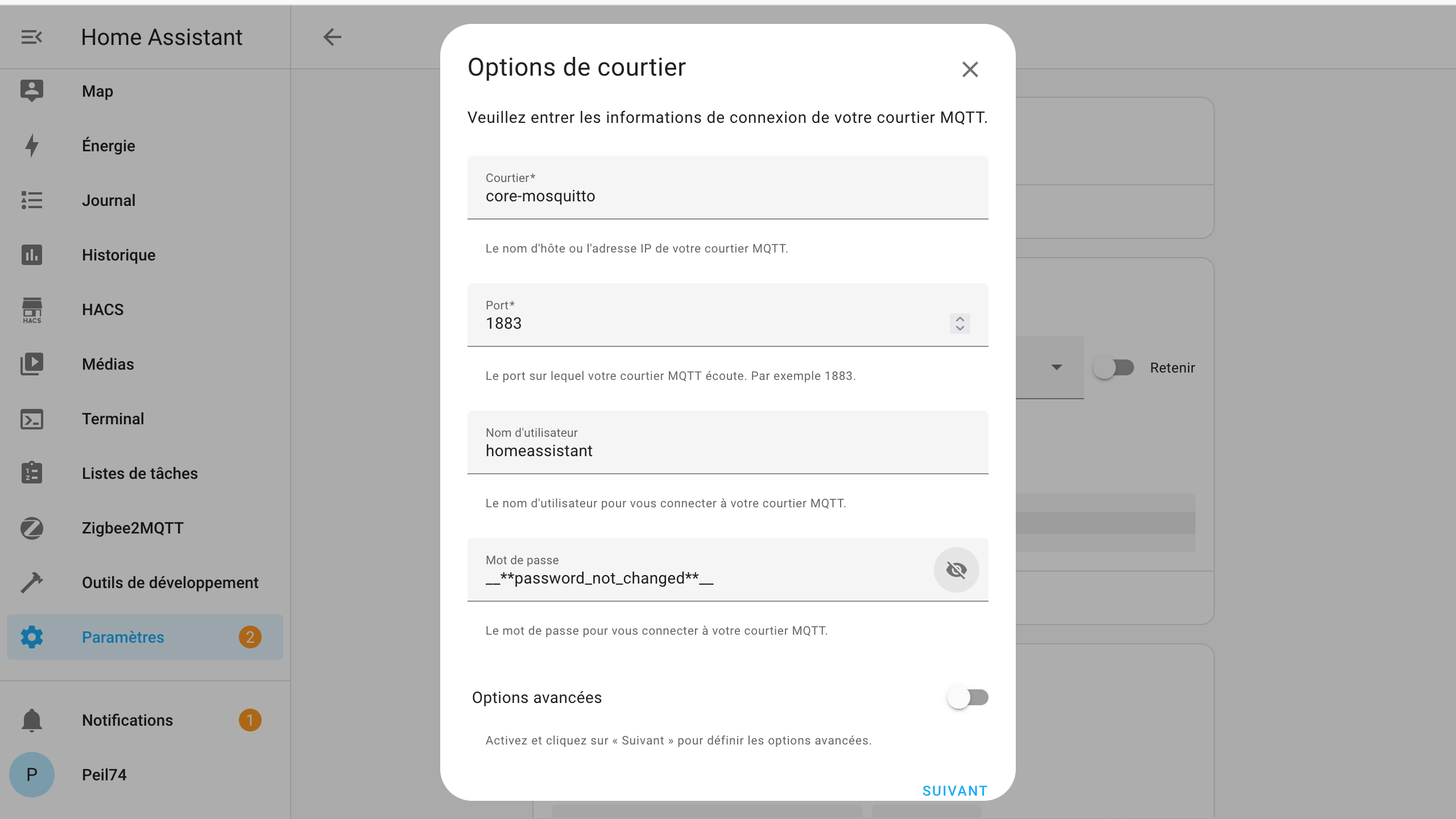 Dans ta page des intégrations (« Paramètres » → « Appareils et services ») tu as une intégration appelée « MQTT », il faudrait vérifier que le nom d’utilisateur et le mot de passe soient les mêmes que dans ton fichier « configuration.yaml » du répertoire « zigbee2mqtt ». En fait, il faut que ceux du fichier « configuration.yaml » soient les même que ceux de l’intégration MQTT.