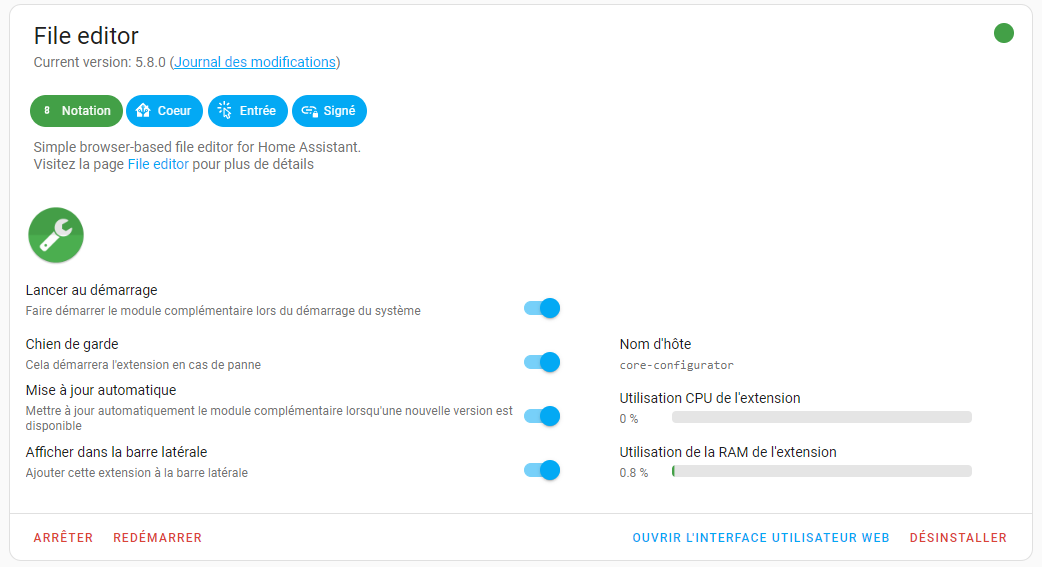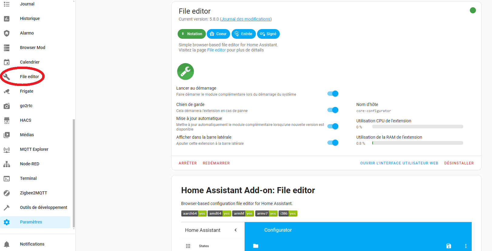 Par ailleurs, là tu as mis une copie d’écran de l’onglet « configuration » du module complémentaire, regarde plutôt le fichier par File editor.