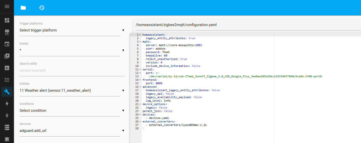 Il faut editer le fichier configuration.yaml du dossier Zigbee2mqtt, par file editor ( module complémentaire a installer ).