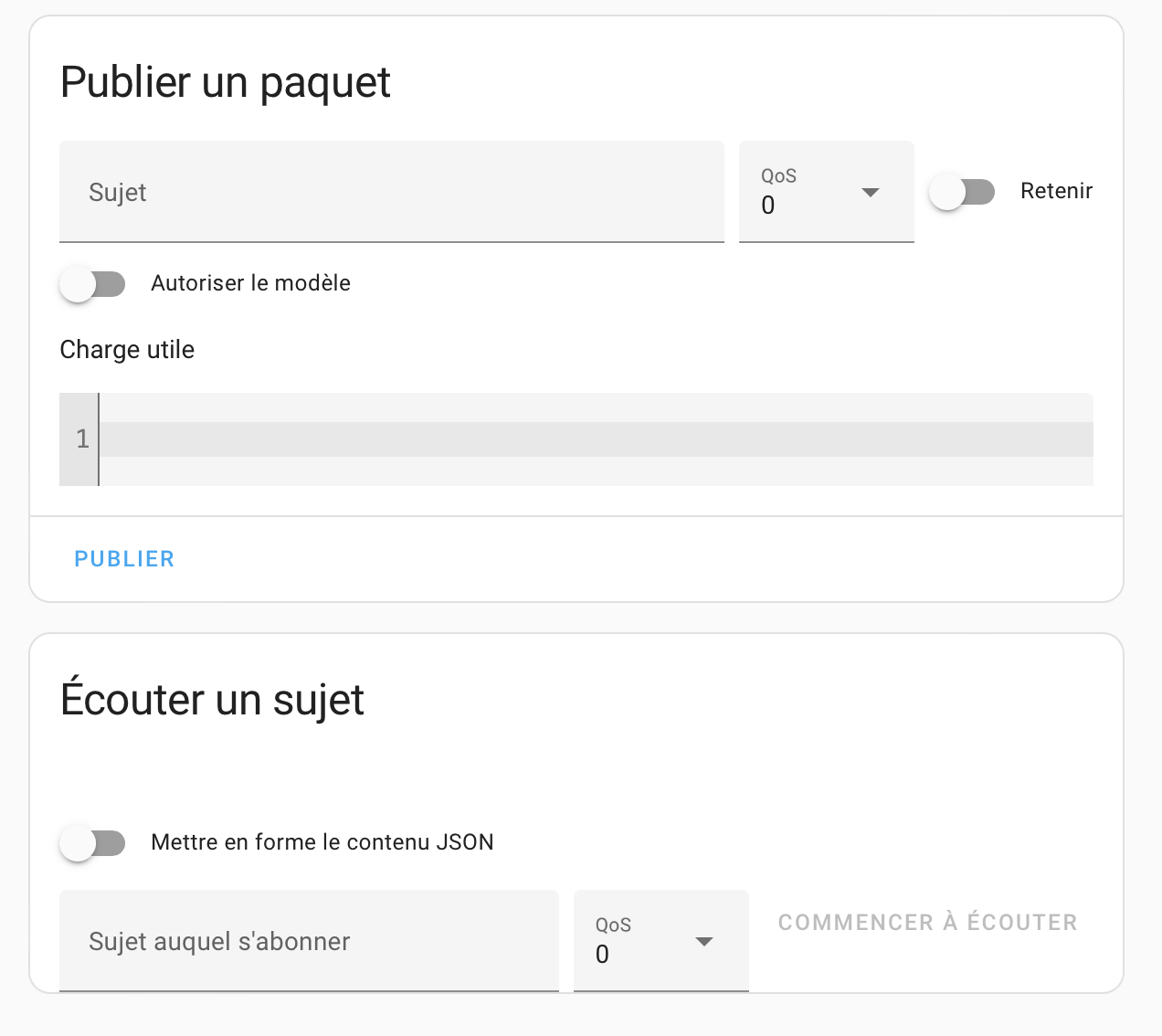 par contre sur la photo de mqtt sur le poste précédant, je dois remplir « publier un sujet » « écouter un sujet » ou ca va se remplir automatiquement ?
