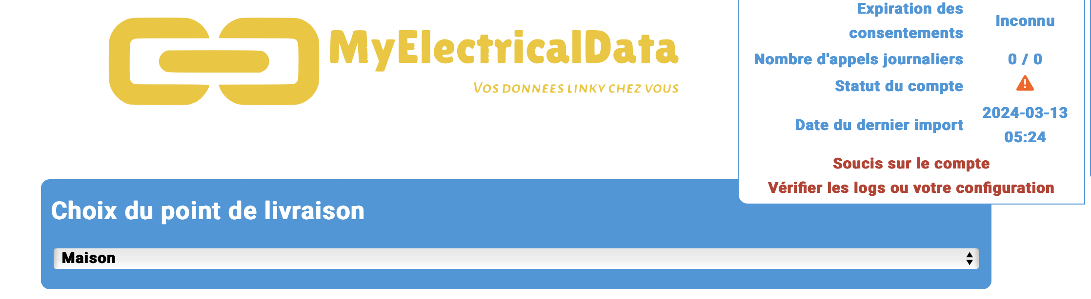 Pour voir les erreurs , faut regarder le journal de MED ( MyElectricalData ) dans le module complémentaire.