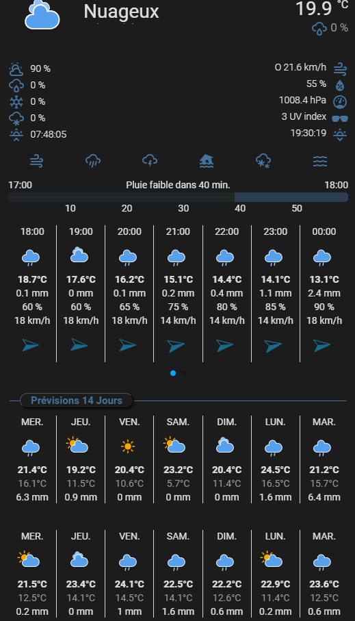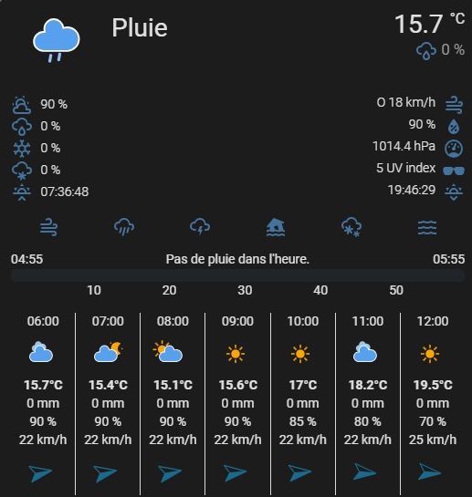 Je confirme ca fonctionne (me manque juste la pluie sur l’heure mais c’est surement du a ma localisation)…apres c’est facile pour moi car je partais from scratch, pour ceux qui ont deja une installation rodée c’est plus embetant
