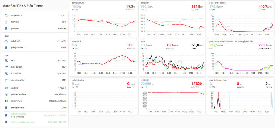 'puissance_solaire': resp['ray_glo01']/360, # global radiation over the previous 6 minutes in J/m² = Wh/m² pendant 6mn -> puissance solaire W/m²