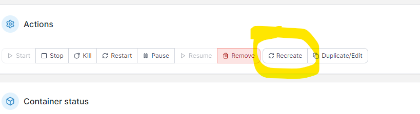 je te joins la catpure de ce que j’ai fais la je n’ai pas encore valider je suis reparti de ma sauvegarde proxomox, on est d’accord après je fais update the stack, je clique sur repull image et redeploy et je fais update ?