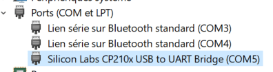 - vous devriez voir votre dongle sous les périphériques COM sous le nom Silicon Labs CP210x. Selectionner le driver silicon labs.